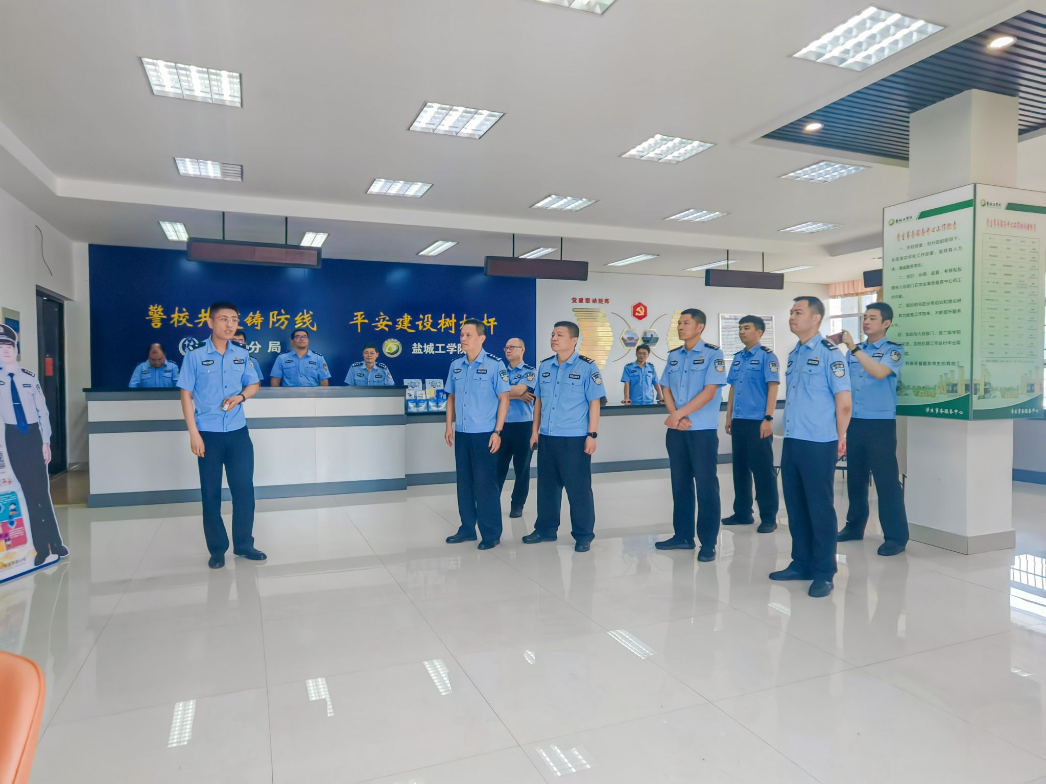 为深化警校联动机制,提升校园安全治理水平,6月27日上午,亭湖区副区长、公安分局局长李卫东,公安分局政委张明,副局长陆祥、孙永成、陆胜一行来校调研指导工作。校党委副书记、校长邵荣出席调研活动,东城派出所所长胥巍巍汇报了校园警务室建设情况。校学生处、安保处主要负责人及亭湖公安分局各警种部门负责人、派出所所长陪同调研。