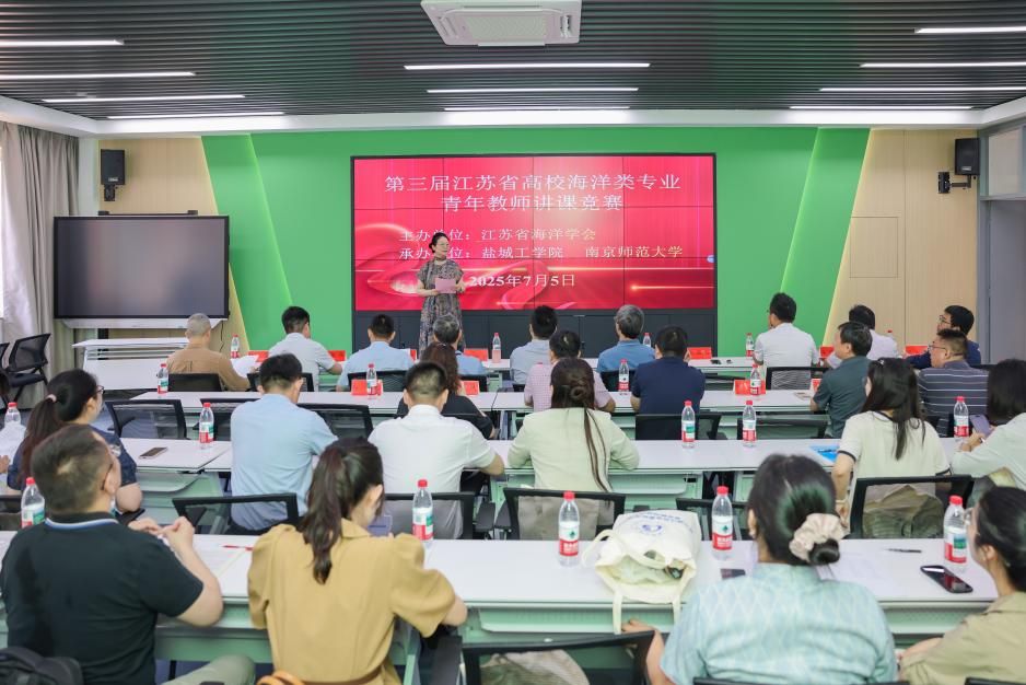 7月5日,第三届江苏省高校海洋类专业青年教师讲课竞赛在我校成功举办。本次活动由江苏省海洋学会主办,盐城工学院和南京师范大学共同承办。来自南京大学、南京师范大学、河海大学、南京信息工程大学、南京工业大学、江苏海洋大学、江苏科技大学、南通大学、南通理工学院、江苏第二师范学院、盐城师范学院和盐城工学院等10余所全省涉海高校的40余名专家和教师参加本次活动。