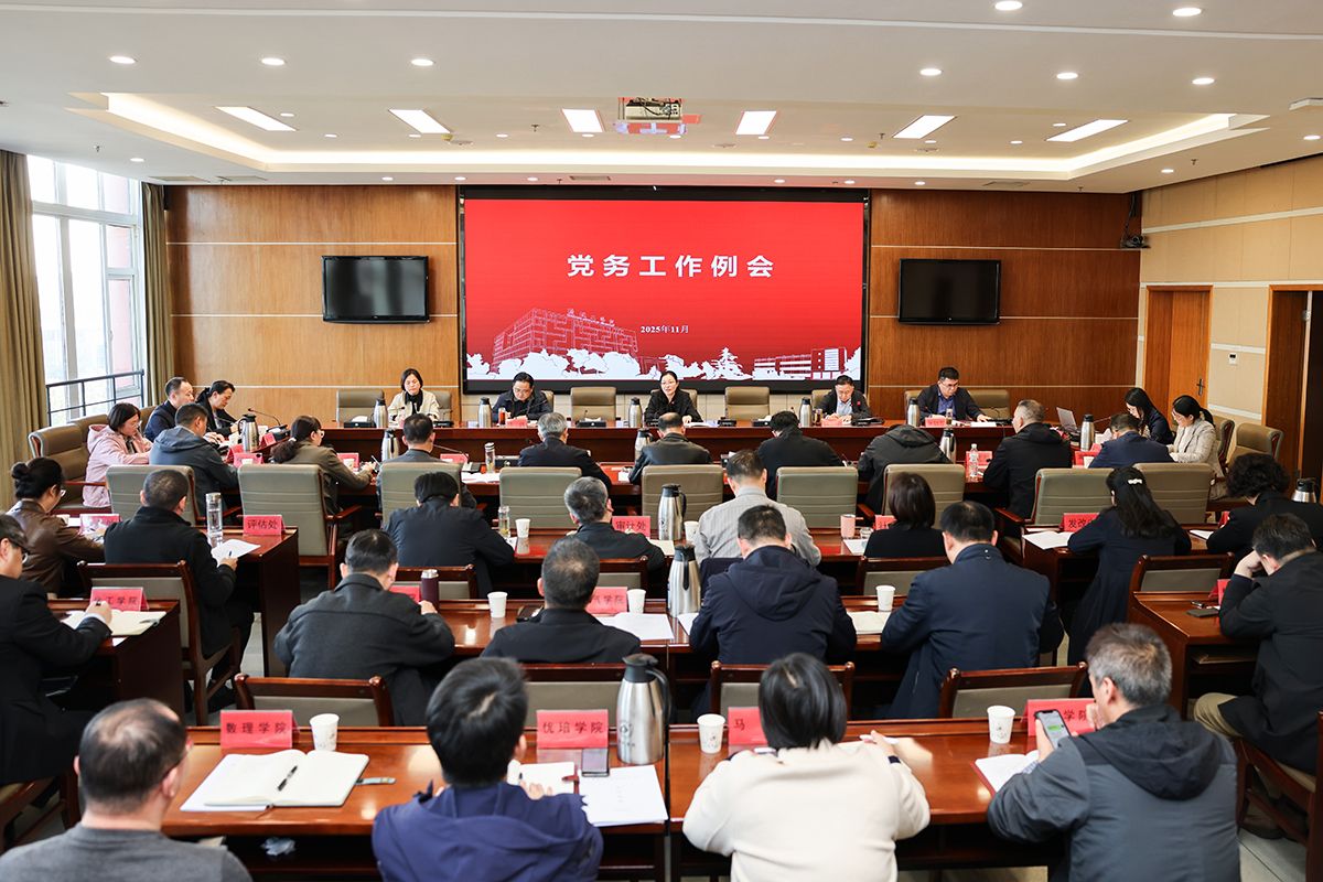 11月3日下午,在希望大道校区行政楼9楼视频会议室,学校召开党务工作例会,听取党群部门汇报并部署11月份主要工作。党委书记方海林,党委副书记薛浩,党委常委、纪委书记、省监委派驻监察专员陈伟,党委常委、副校长张勤芳,党委常委、副校长邢晓平,党委常委、统战部部长姚军,党委常委、宣传部部长奚新国出席。薛浩主持会议,各党群部门负责人、二级党组织书记和机关党支部书记参加。