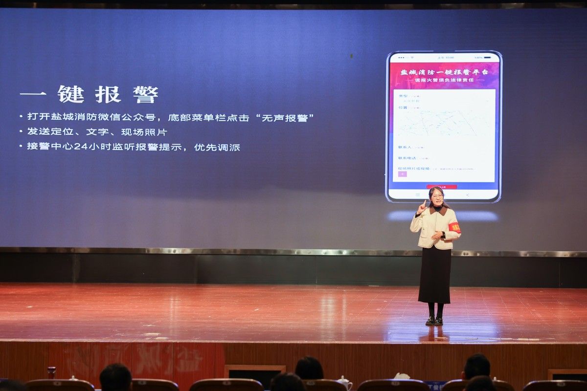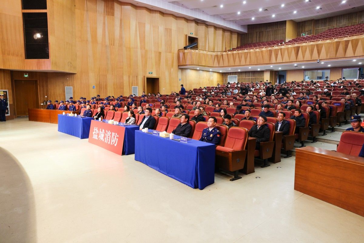 11月4日上午,盐城市“119”消防宣传月活动启动仪式在我校希望大道校区行政楼报告厅举行。盐城市副市长李兰翔,我校党委常委、副校长张勤芳、邢晓平,市应急管理局党委书记、局长张鹏程,市消防安全委员会副主任、消防救援支队支队长丁俊标,市消防救援支队党委书记、政治委员陈文杰等出席活动。市消防安全委员会有关单位分管领导,学校消防工作领导小组成员单位负责人,部分消防安全重点单位负责人,消防志愿者、学生代表450余人在主会场参加活动。