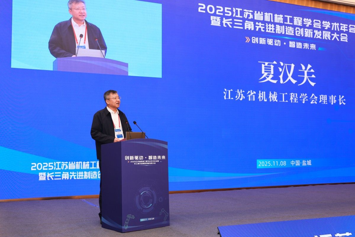 唐宏介绍了盐城作为长三角中心区城市在绿色低碳发展和先进制造业方面的布局与成果。他表示,盐城正积极构建“5+2”战略性新兴产业体系,希望以此次大会为契机深化产学研合作,共同推动制造业创新突破。王小峰指出,本次会议是落实“制造强国”战略的重要实践,省科协将全力支持机械工程领域的科技创新,为江苏高质量发展注入新动能。夏汉关表示,学会将持续搭建高水平交流平台,推动科技成果转化与产业升级,助力长三角制造业向智能化、绿色化迈进。