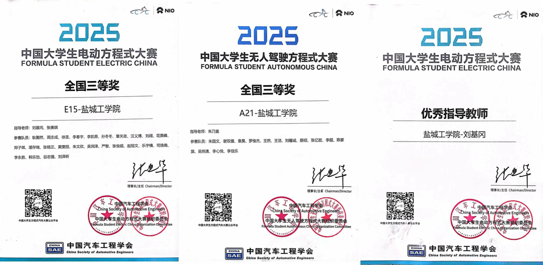 11月17日-23日,由中国科学技术协会指导、中国汽车工程学会与合肥市人民政府共同主办的2025“蔚来杯”中国大学生方程式系列赛事圆满落下帷幕。来自清华大学、吉林大学、同济大学、香港理工大学等国内外高校的82支电动车队和35支无人驾驶车队齐聚合肥,展开为期七天的精彩角逐。在这场汇聚百余支顶尖高校车队的高水平竞赛中,我校方程式赛车队以扎实的技术实力和“敢拼敢赢、精益求精”的信念迎难而上,续写辉煌篇章。最终,车队荣获中国大学生无人驾驶方程式大赛总成绩三等奖、中国大学生电动方程式大赛总成绩三等奖,指导教师获评“优秀指导教师”称号。