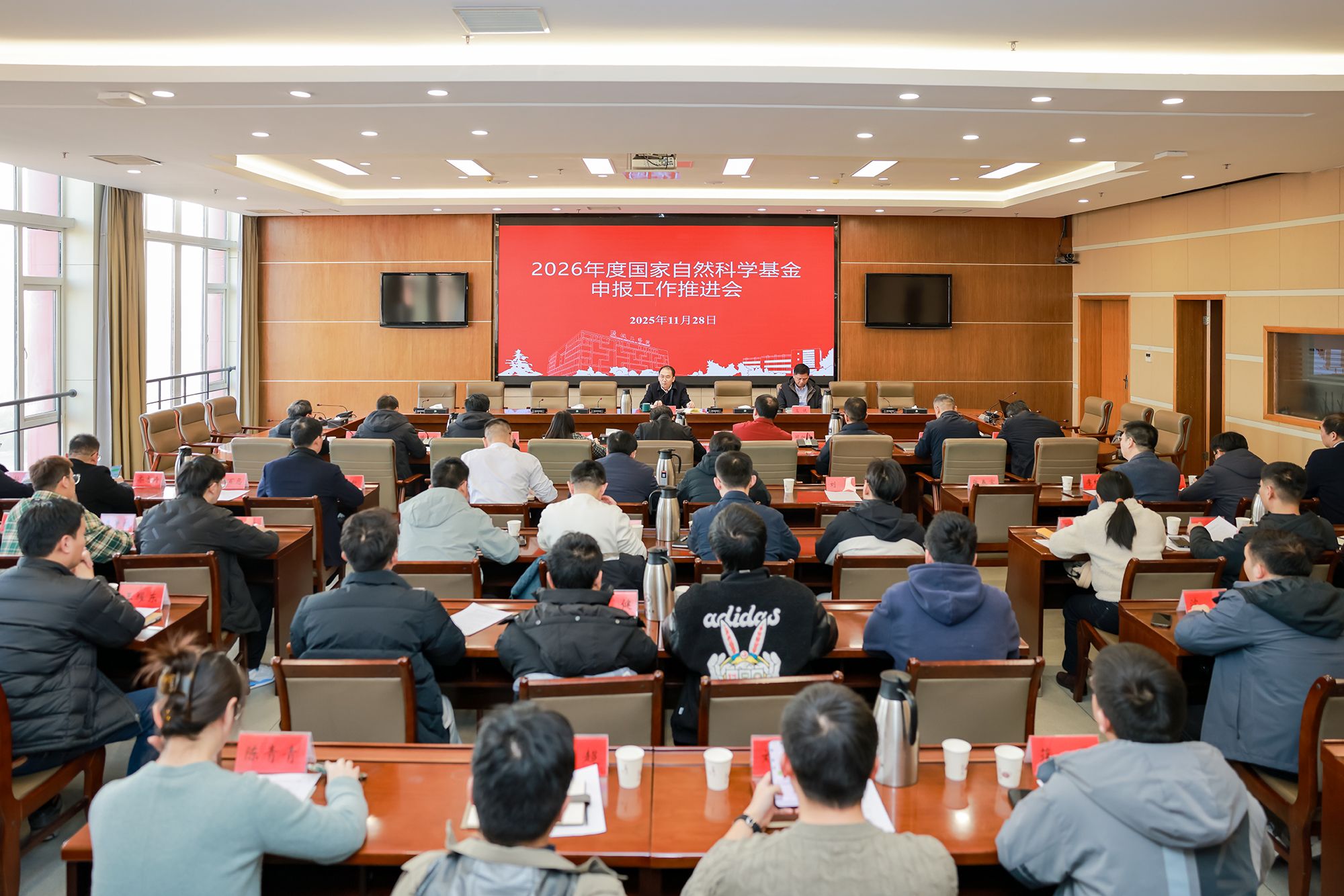 为落实我校关于2026年度国家自然科学基金申报工作布置会的要求,扎实推进申报组织工作,11月28日下午,学校在行政楼9楼会议室召开2026年度国家自然科学基金申报工作推进会,副校长、盐城市政协副主席丁成出席,科学技术处处长高健,各理工类学院院长、分管科研工作的副院长、申报国基的“校级重点指导对象”,科学技术处相关人员参加会议。