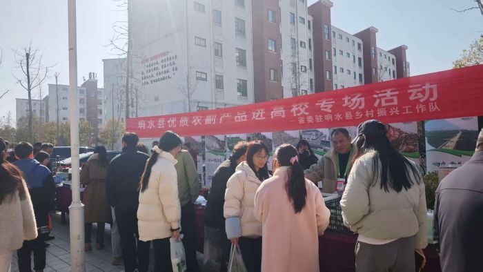 本次展销汇集了响水县丰富多样的特色农副产品,现场展台陈列有序,产品琳琅满目,秋月梨、玉米汁、烤肠好评如潮,康庄大米、海鸭蛋、草鸡蛋、浅水藕被抢购一空,铁皮石斛、费氏肉松、农家酱菜、四鳃鲈鱼、冬枣、粉丝等产品引人注目。学校广大师生踊跃参与,或品尝、或询价、或购买,了解产地背景、种植养殖及生产过程,咨询产品特色优势、营养价值。工作人员热情、耐心、详细地解答每一个问题,现场洋溢着浓厚的助农兴农氛围。