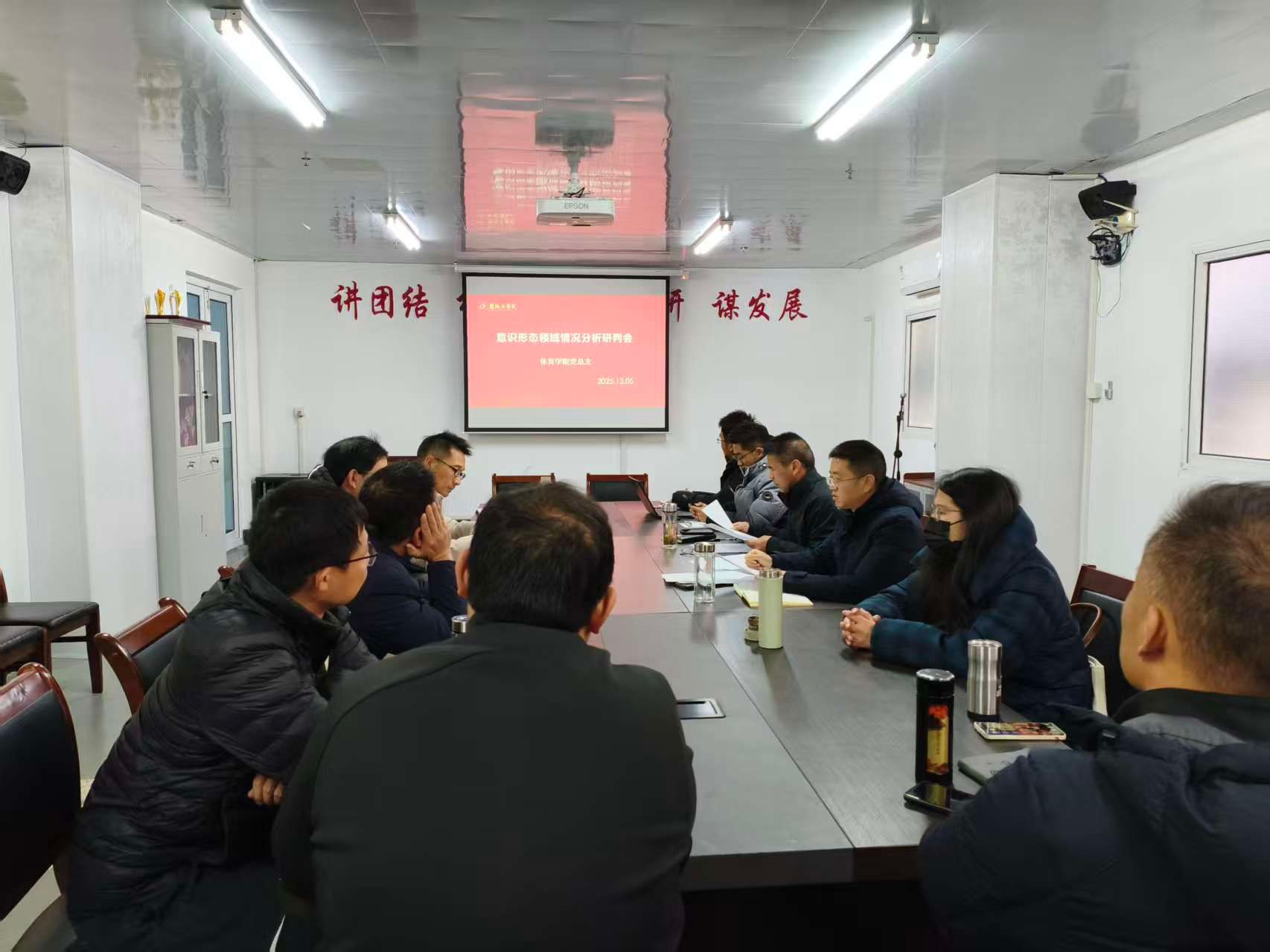 12月5日上午,体育学院党总支在南校区风雨操场会议室召开意识形态工作专题会议,学院党总支书记董学兴主持,党总支理论学习中心组全体成员参加。
