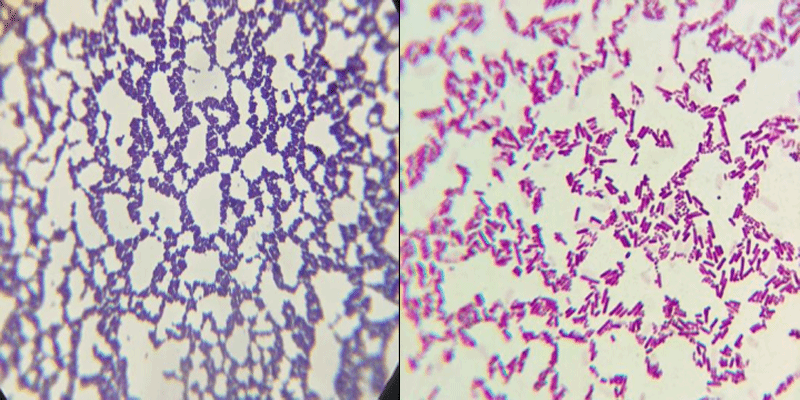 (a)混合菌染色1 (b)混合菌染色2