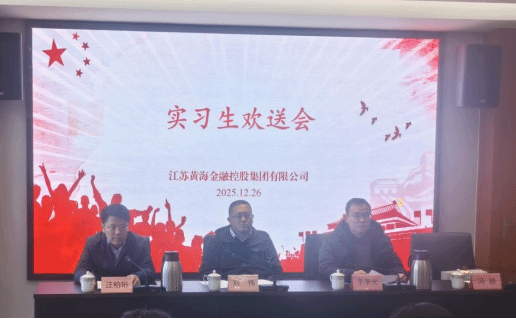 12月26日下午,黄海金控集团在4楼2号会议室开展实习生欢送会。黄海金控集团党委委员、副总经理刘伟,黄海金控集团党群工作部部长汪柏珩,各实习单位导师;盐城工学院经管学院院长李争光、应用经济学系副主任冯颖和全体实习生参加。汪柏珩主持。