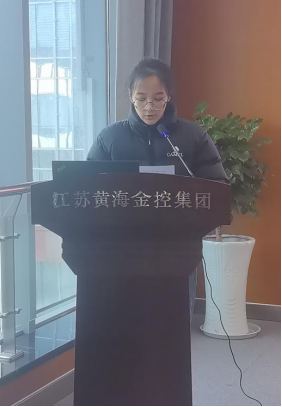 然后,实习生代表虞寿萍、吴邦妮和孙明华与大家分享了这段实习期间的所见、所感和所获。三位同学均向所有关心、指导、帮助过她们的领导、老师和伙伴们致以最诚挚的感谢。虞寿萍同学表示,黄海金控集团为实习生搭建了连接校园与职场的坚实桥梁,让同学们在真实的工作场景中检验所学、锤炼真功。同时感谢母校盐城工学院的培育之恩,学校的谆谆教诲,不仅赋予她扎实的专业知识,更塑造了求真务实的品格。未来,将带着在黄海金控汲取的职业精神与工作智慧、带着母校的殷切期望,以严谨细致的态度、主动进取的热忱,在人生的新征程上步履不停、精进不怠。吴邦妮表示,在黄海金控不仅获得了专业能力的提升,更感受到集团严谨务实的工作作风、团结协作的氛围和以人为本的企业文化。见证了集团在金融领域的稳健运营与责任担当,也被身边同事爱岗敬业、精益求精的职业精神所感染。这些宝贵经历都将成为未来职业道路上的珍贵财富,助力其更好地成长。孙明华表示,这段宝贵的经历筑牢了其专业立身之本、锤炼了突破自我的勇气、领悟了职业素养的核心,未来将带着在这里学到的知识与担当,在专业领域脚踏实地、稳步前行,也会铭记这个温暖的集体与前辈的谆谆教诲,期待以更成熟的姿态,与大家携手共进,为行业发展贡献力量。
