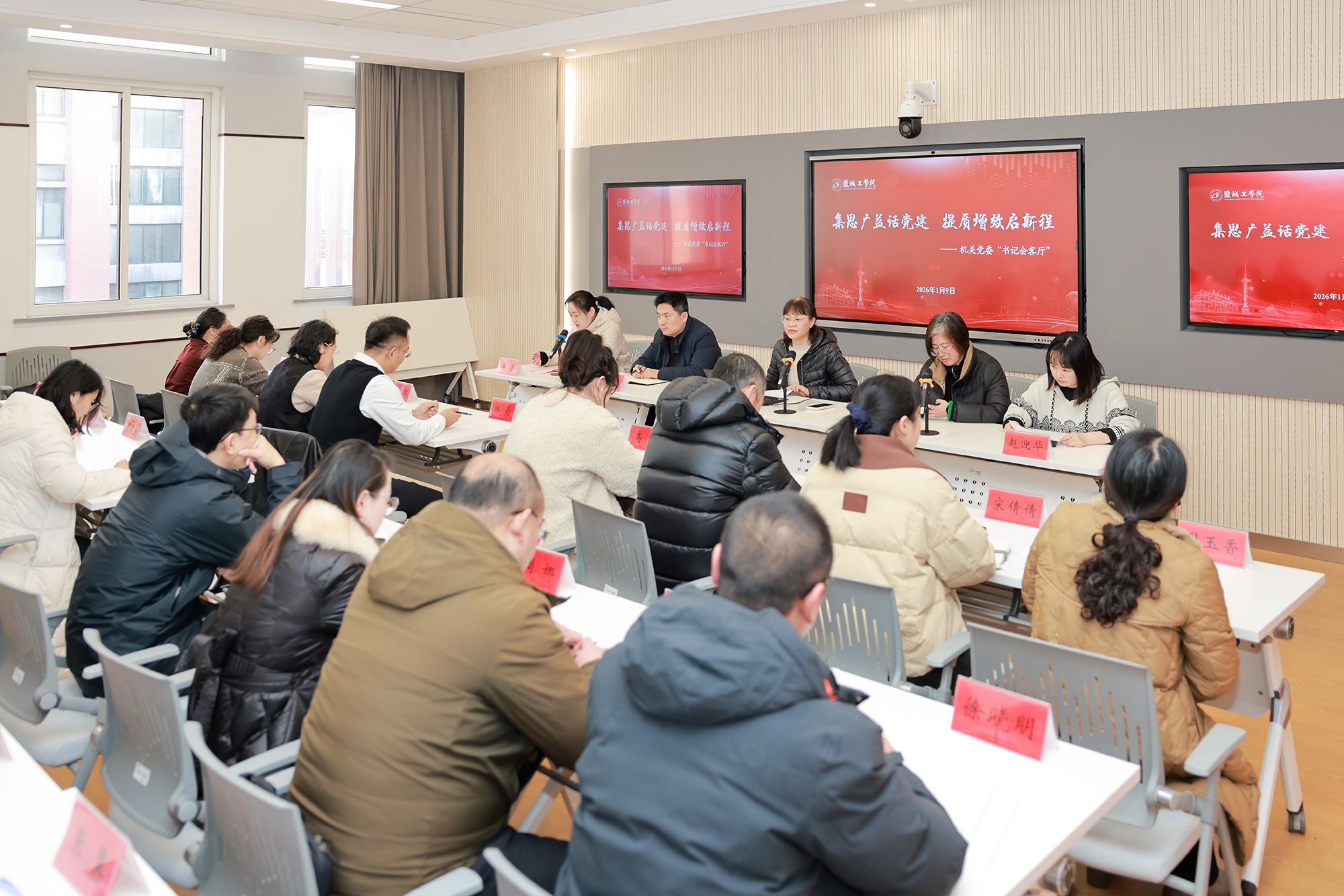为深入学习贯彻习近平总书记关于机关党建的重要讲话和重要指示精神,进一步加强兼职组织员队伍建设,不断提升基层党建工作质量,1月9日下午,机关党委在希望大道校区博学楼D309会议室召开机关党支部兼职组织员工作座谈会。近30名组织员走进“书记会客厅”,围绕“集思广益话党建,提质增效启新程”主题进行交流研讨。活动由机关党委副书记毕蕾主持。