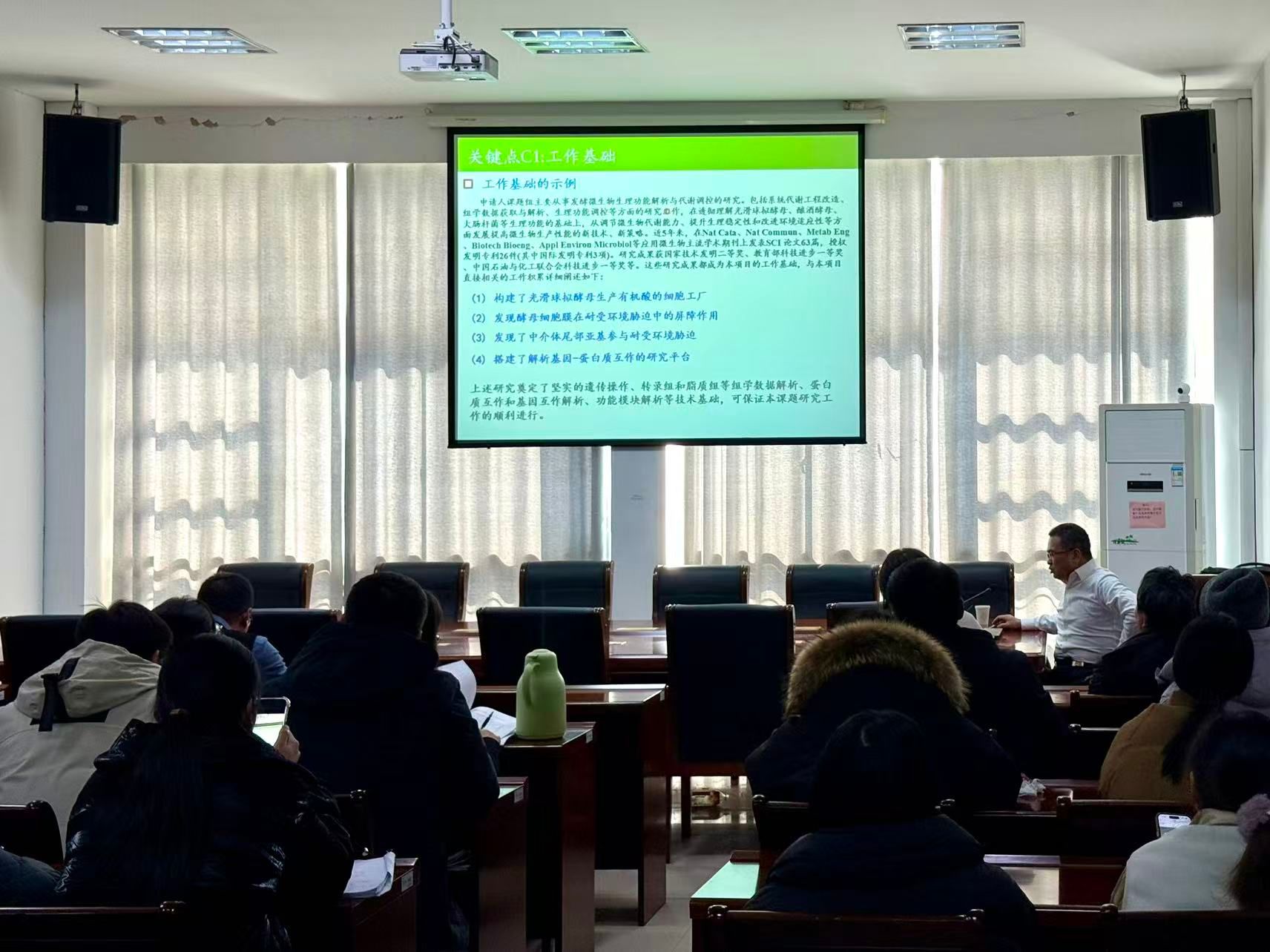 为扎实推进国家自然科学基金申报工作,切实提升青年教师基金申报书撰写质量与项目立项率,1月13日上午,海洋与生物工程学院邀请教育部长江学者计划特聘教授、江南大学二级教授、博士生导师刘立明来校指导国家自然科学基金申报工作。科技处处长高健,海生学院院长彭斌,副院长齐志涛、张丽,海生学院、化工学院、材料学院、环境学院2026年申报基金人员40多人参加指导会。