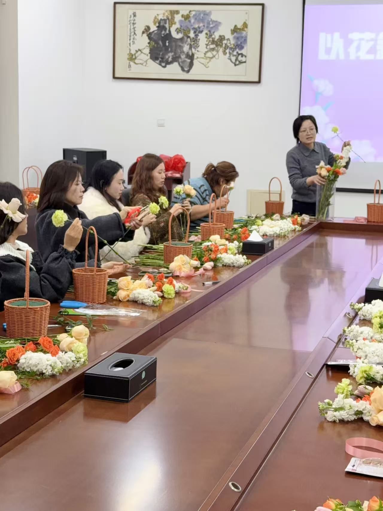 为丰富女教职工精神文化生活,营造温馨和谐的学院氛围,3月18日下午,人文学院在仁和楼A302会议室开展“以花叙事,人文芳华”主题插花活动。