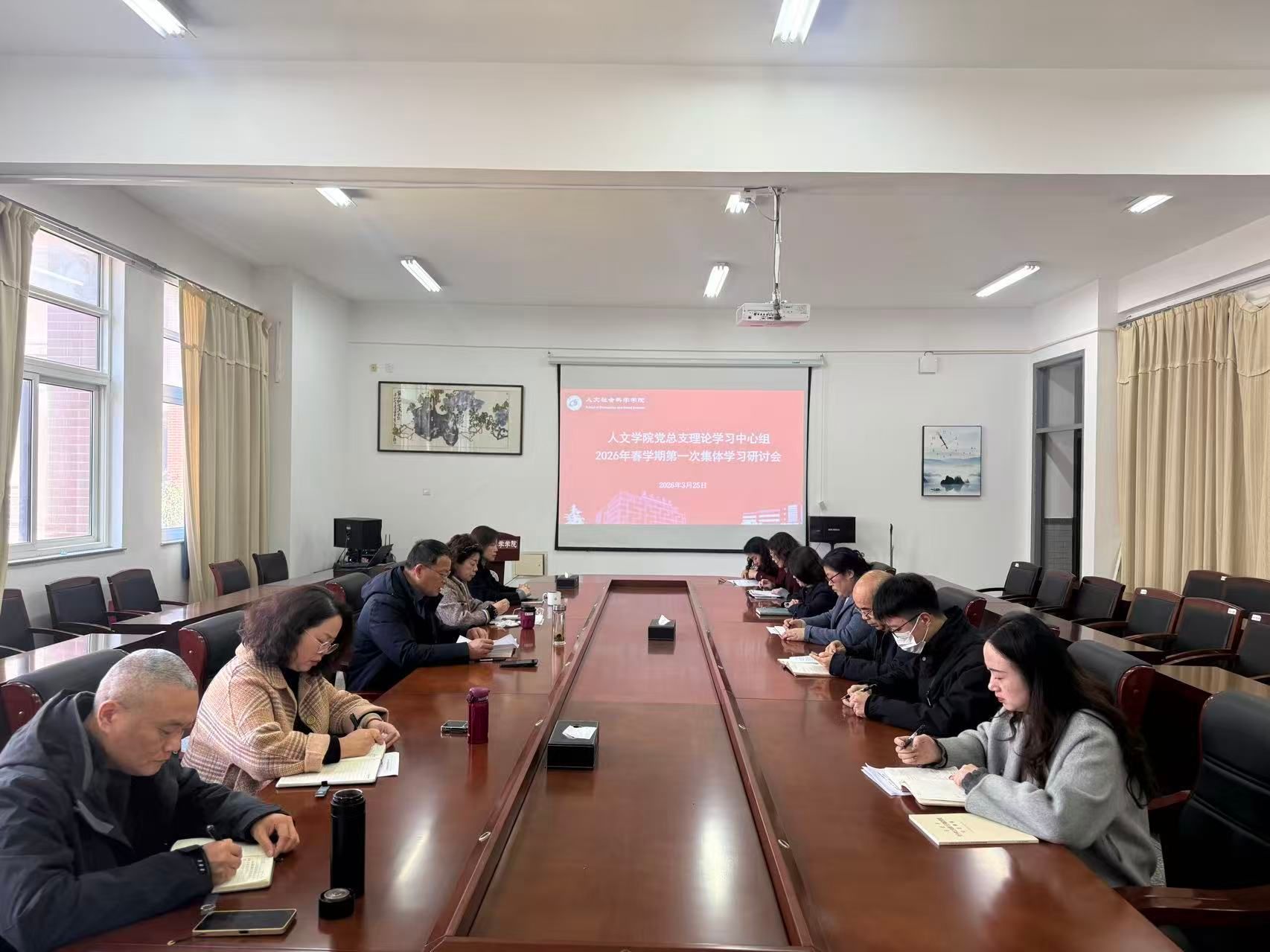 3月25日下午,在仁和楼A304会议室,人文学院党总支理论学习中心组召开2026年春学期第一次集体学习研讨会。会议由学院党总支书记何登溢主持,党总支理论学习中心组成员参加。
