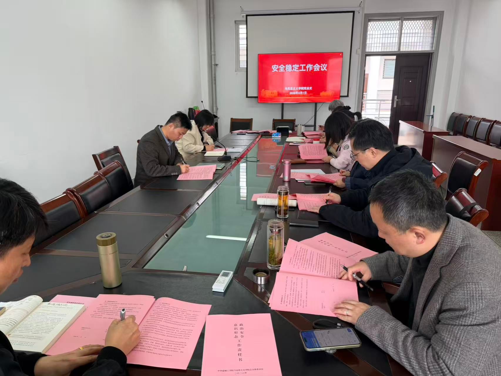 会上,学院领导与各教研部主任、相关科室负责人签订了安全稳定工作责任状和意识形态与政治安全工作责任书,将安全责任落实到岗、明确到人,进一步夯实安全稳定工作根基。