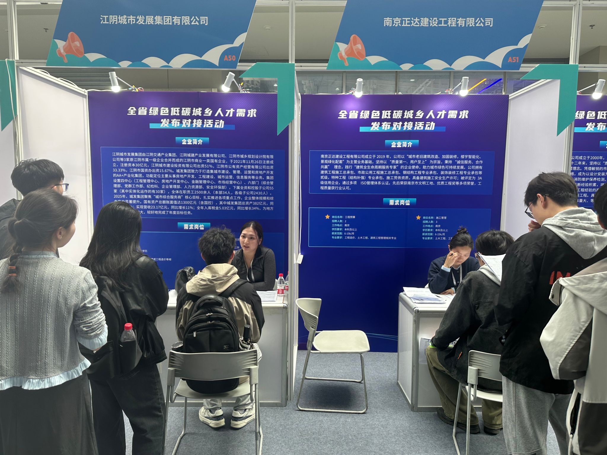 同期举办的全省绿色低碳城乡人才需求发布对接活动现场人气旺盛,汇聚70余家省内外优质建筑与城乡建设企业,提供千余个专业对口就业岗位,涵盖建筑工程、工程造价等方向,精准匹配我校土木工程、工程管理、给排水科学与工程、建筑学等专业毕业生需求。活动现场,土木工程学院学生积极投递简历、与企业HR面对面沟通,详细了解岗位要求、发展空间与薪酬待遇。学院教师主动对接企业负责人,围绕人才培养、实习实训、校企合作等议题深入洽谈,为后续深化校企协同育人、提升人才培养与产业需求契合度奠定坚实基础。
