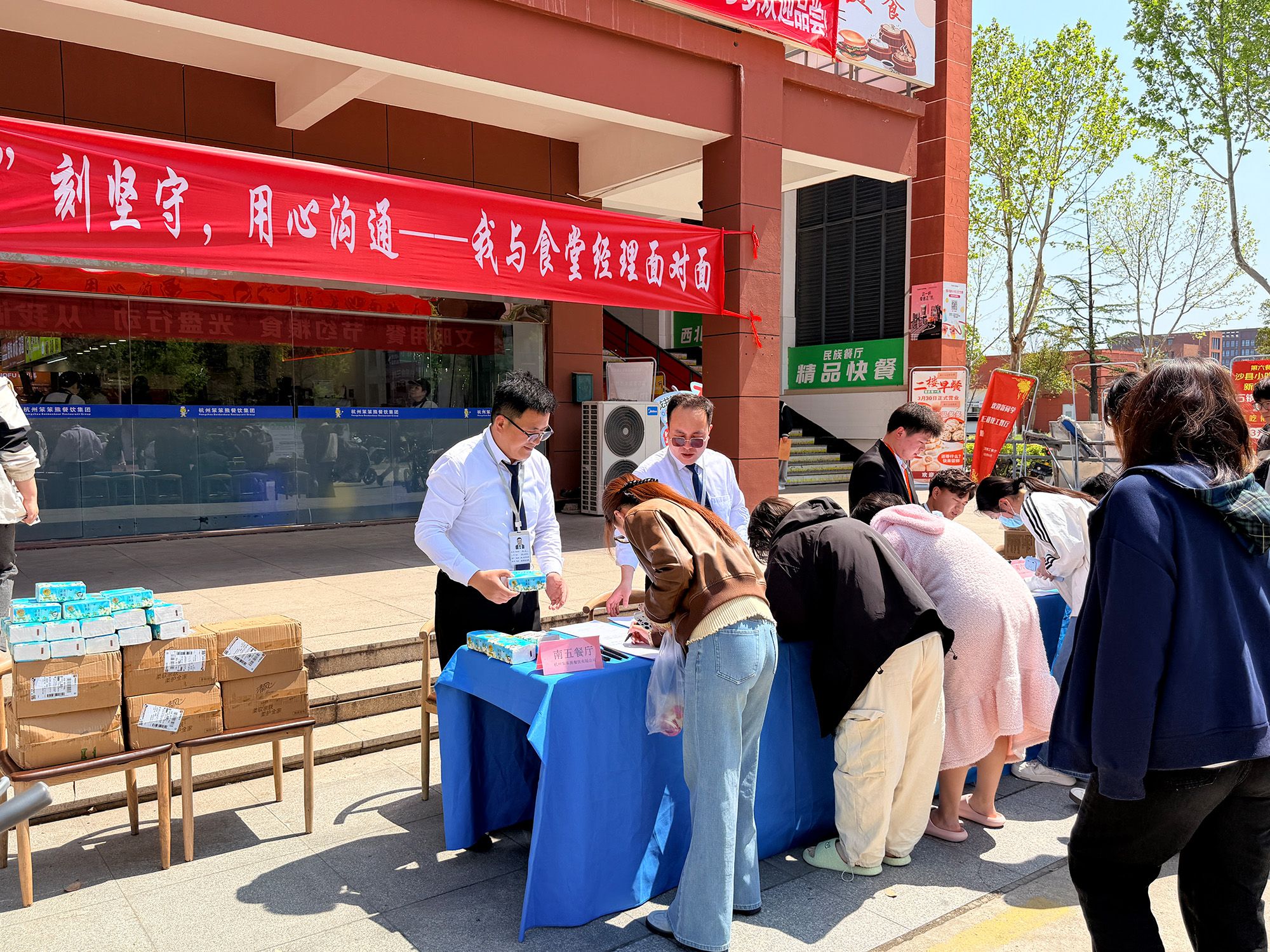 为深入推进“品质后勤”建设,进一步畅通师生沟通渠道,提升餐饮服务保障水平,4月15日,后勤服务集团在南北两校区三栋食堂楼同步开展“餐厅经理接待日”主题活动。集团餐饮工作分管领导、饮食服务中心全体人员、各餐厅项目经理及师生代表参加活动。