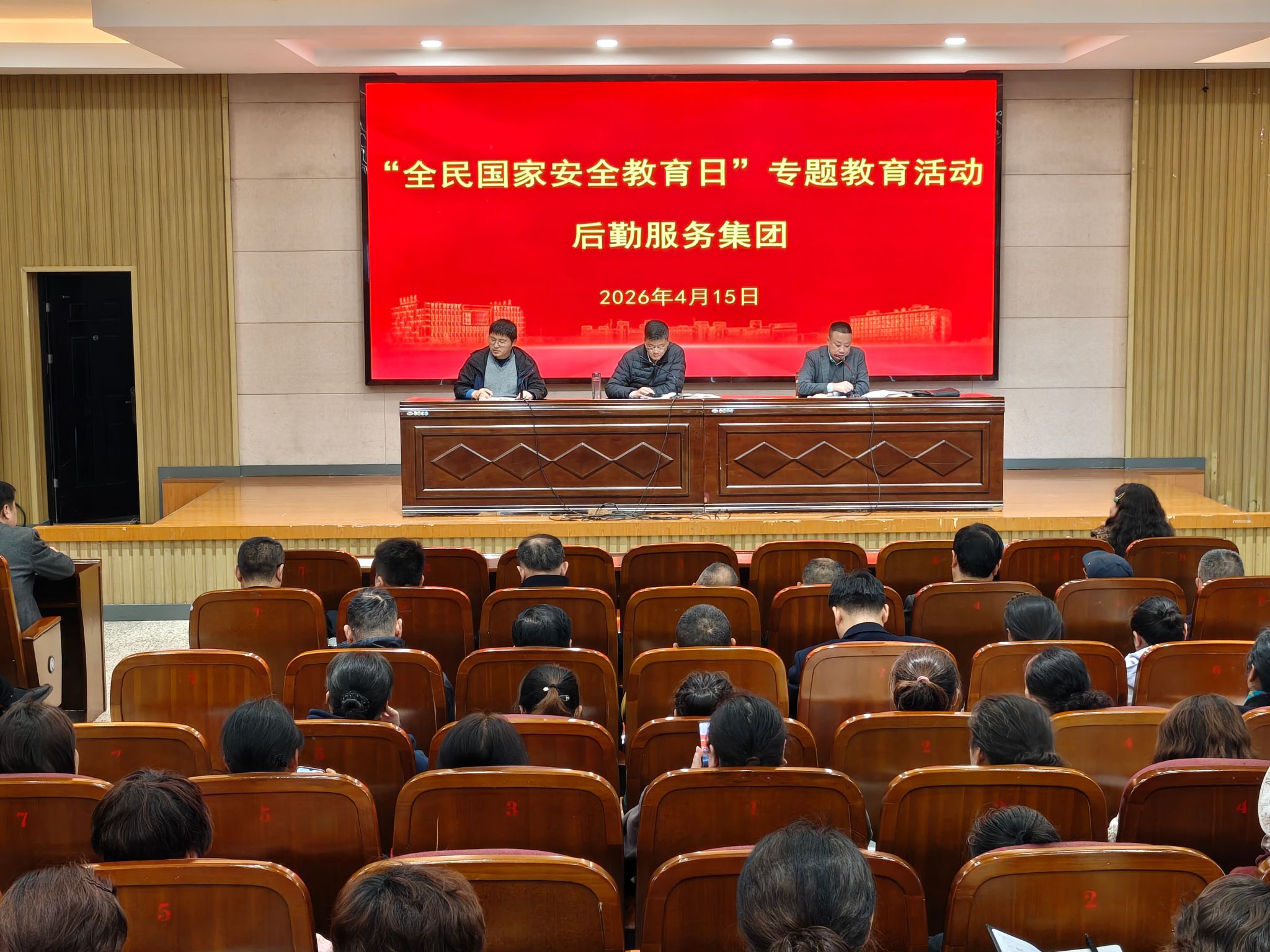 为深入贯彻总体国家安全观,增强全员安全意识,4月15日上午,后勤服务集团在希望大道校区机械馆报告厅开展全民国家安全教育日专题教育活动。集团全体教职工及聘用制员工等200余人参加,活动由集团党委书记李刚主持。