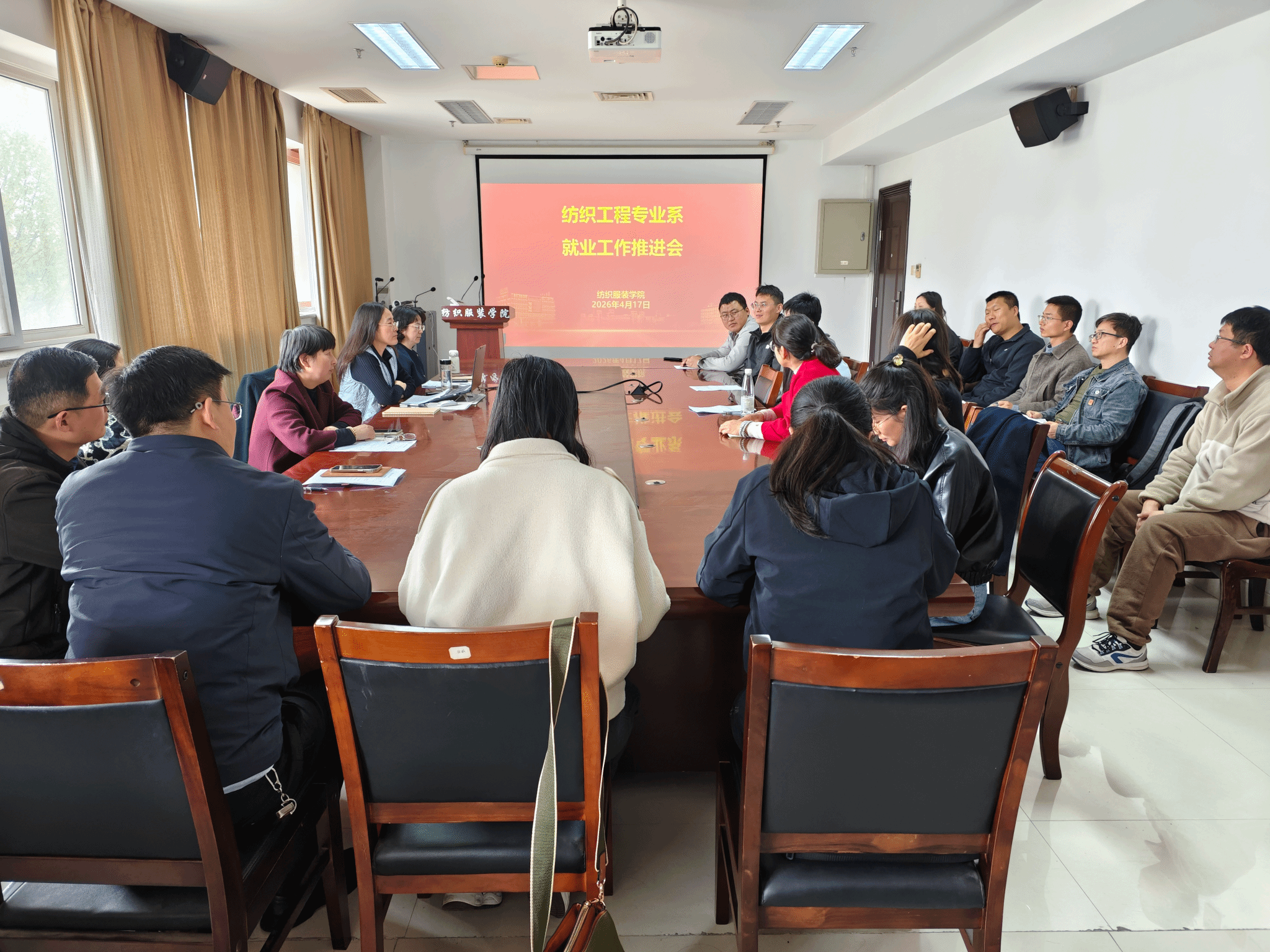 为促进2026届毕业生高质量充分就业,破解就业与学业双重难题,4月15日至17日,纺织服装学院按照专业系分批在学院会议室召开就业工作推进会。院长王春霞,各专业系主任、全体专任教师及毕业班辅导员参会。会议由党总支副书记吴晓静主持。
