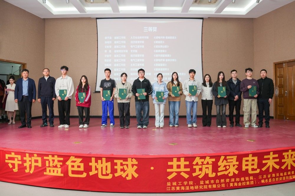 为积极响应国家生态文明建设战略,提高公众爱护地球、保护家园意识,4月24日下午,由盐城工学院环境学院、江苏省海洋地质调查院主办,江苏黄海湿地研究院有限公司(黄海金控集团)、响水县自然资源和规划局协办的世界地球日科普活动暨绿能向海发展交流会在建军东路校区五四报告厅圆满结束。校党委常委、宣传部部长奚新国,盐城市自然资源和规划局副局长刘月仲,各界学术代表、承办单位工作人员及获奖学生等100余人出席会议。