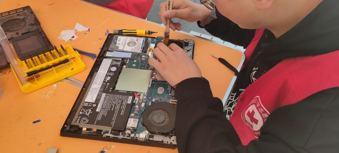 中午十二点,志愿者们准时在人流量比较大的学生一食堂门口摆起了“摊子”,帮助同学们进行电脑清灰、重装系统等服务。搭好帐篷,安置好桌椅板凳,很快就有几位同学带着电脑来咨询了。志愿者们热心接待了他们,并动作利索的帮助他们解决了问题,还跟同学们讲解常见的电脑问题自检方法及解决的办法。精湛的技术、娴熟的手法、热情的服务得到了同学们的好评。