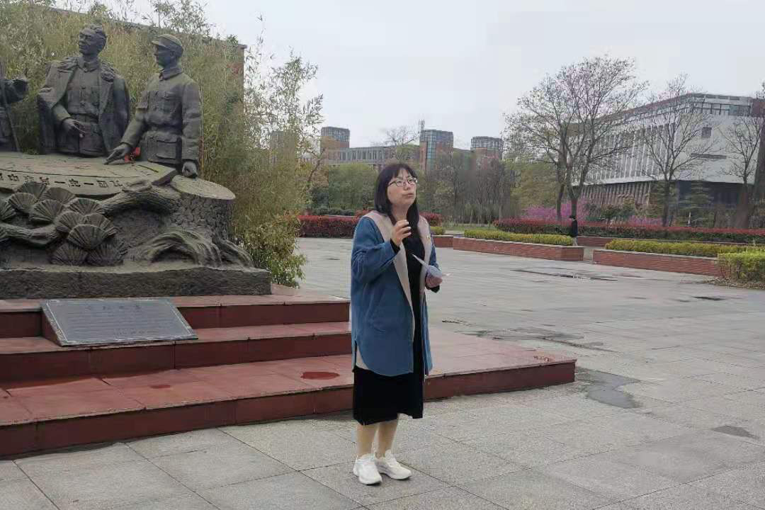 胡凌霞结合校史向介绍了铁军广场背后的故事,讲述了我校充分利用革命老区红色文化资源,传承、弘扬新四军“铁军精神”,坚持用“铁军精神”办学、用“铁军精神”育人的办学历程。
