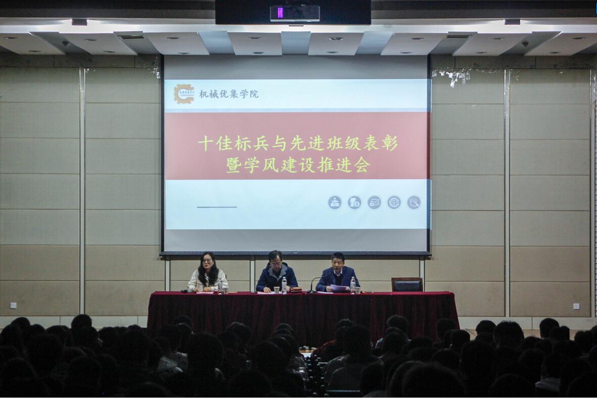 4月23日晚,机械优集学院在北校区化工楼报告厅举办十佳标兵与先进班级表彰暨学风建设推进会。机械优集学院党委书记孙雷、新生辅导员和大一新生等600余人参加,党委副书记秦卫兵主持。
