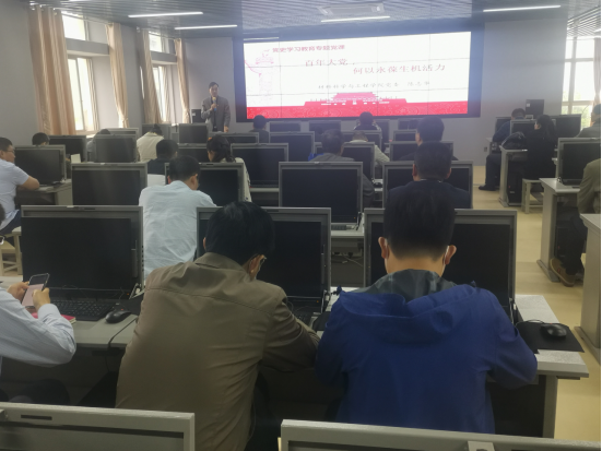 5月19日下午,材料学院在北校区知达楼虚拟仿真机房开展党史学习教育专题党课学习,学院党委书记陈志华为学院全体教工党员讲《百年大党,何以永葆生机活力》党史学习教育专题党课。