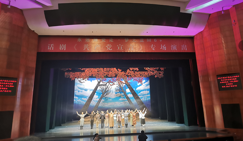 5月23日晚,在盐城市文化艺术中心,设计艺术学院教工党支部开展“学党史、守初心、担使命”党史学习教育主题党日活动,组织观看红色话剧《共产党宣言》,学院全体教职工党员、关工委成员参加活动。