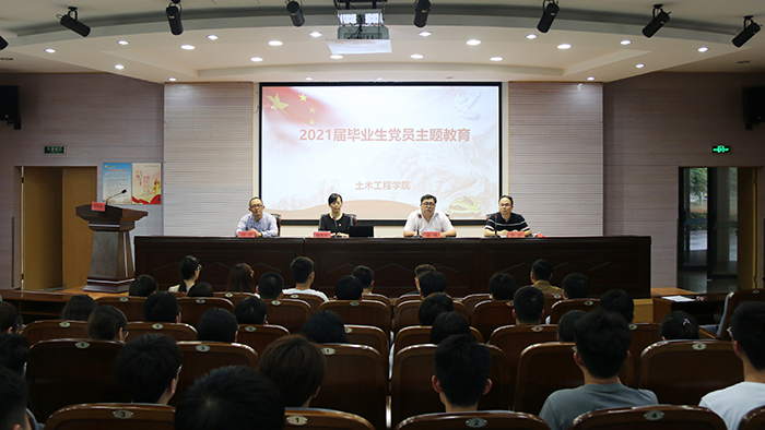 为扎实推进党史学习教育,加强毕业生党员教育,强化党员服务意识,6月10日下午,在南校区土木馆报告厅,土木学院党委书记顾志兰为2021届毕业生党员上《不忘初心、牢记使命,做厚德重行的土建人》专题党课。学院党委副书记谷伟、学工办教师及全体毕业生党员参加。