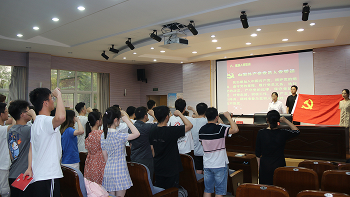 省优秀毕业生、考取西安建筑科技大学研究生党员代表徐雨萌、考取名校优生毕业生党员代表施浪分别表态发言,感谢学校、学院、老师们四年来的培养,在离校前将继续发挥党员的先锋模范作用,在自己的工作岗位上尽心尽责,主动为同学服务,作文明离校的表率。