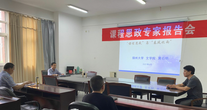 6月16日下午,在南校区仁和楼A304会议室,扬州大学文学院黄石明副教授应邀走进我校人文学院“课程思政大讲堂”,就如何学习贯彻习近平总书记重要讲话精神,落实立德树人的根本任务,为全院教师作了题为“‘课程思政’ 与‘春风化雨’”的专题讲座。黄石明阐述了“课程思政”的主要形式、本质、理念、方法、思维方式,并就汉语言文学专业教学中如何挖掘课程思政元素,破解课程思政建设的难点,提升课程思政的有效性,实现课程“春风化雨,润物无声”的思政效果,分享了自己的做法和体会。本次活动由人文学院衣传华院长主持。
