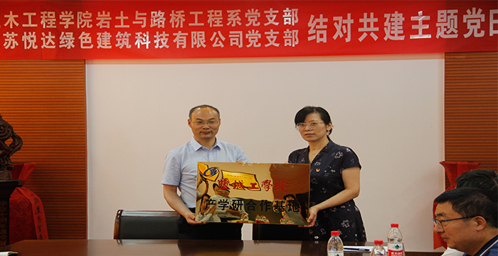 6月22日,土木工程学院岩土与路桥工程系党支部与江苏悦达绿色建筑科技有限公司党支部开展结对共建主题党日活动。学院党委书记顾志兰、副院长王照宇和江苏悦达绿色建筑科技有限公司副总经理陈明岸、季春潮等出席活动,岩土与路桥工程系党支部书记、系主任李富荣主持活动,支部全体党员和学生党员代表参加活动。