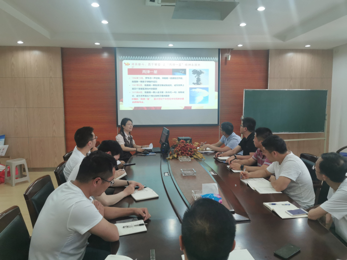 杨秀丽从“坚定信念、永葆先进,撑起强大精神支柱”;“实事求是、与时俱进,筑牢思想基石”;“百折不挠、勇于纠错,展现高超政治智慧”;“牢记宗旨、执政为民,坚守初心矢志不移”;“艰苦奋斗、勇于攀登,让“两弹一星”精神永放光芒”等五个方面展开,使广大党员深刻领会党史学习教育的重要性。她指出,支部党员要做到学史明理、学史增信、学史崇德、学史力行,学党史、悟思想、办实事、开新局,以昂扬姿态奋力开启全面建设社会主义现代化国家新征程,以优异成绩迎接建党一百周年。最后,杨秀丽重点介绍了“两弹一星”元勋们的丰功伟绩,深刻明晰“两弹一星”的精神内涵,并结合本部门从成立到发展至今所走过的艰辛历程,敦促广大党员同志要不畏艰难险阻,勇攀科技高峰,立足岗位做标兵、树标杆,以党员的榜样、力量来带动周边群众干事创业,让“两弹一星”精神永放光芒。