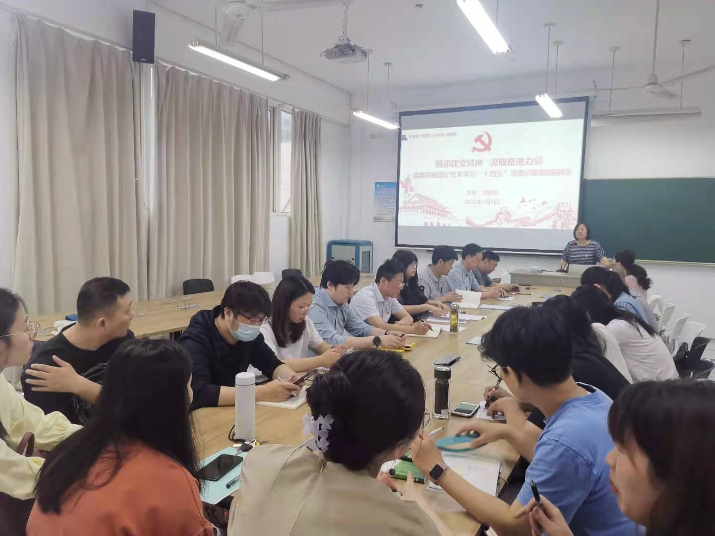 胡凌霞结合习近平总书记在庆祝中国共产党成立100周年大会上的重要讲话精神,阐述了对伟大建党精神内涵的理解,指出党员继承和发扬伟大建党精神,要坚定理想信念,践行初心使命,坚持英勇斗争。她号召全体教工党员要坚守初心,勇担使命;把握优势,主动作为;找准短板,聚焦发力,全面开启设计艺术学院“十四五”高质量发展新征程,为学校、学院高质量发展做出更大贡献。