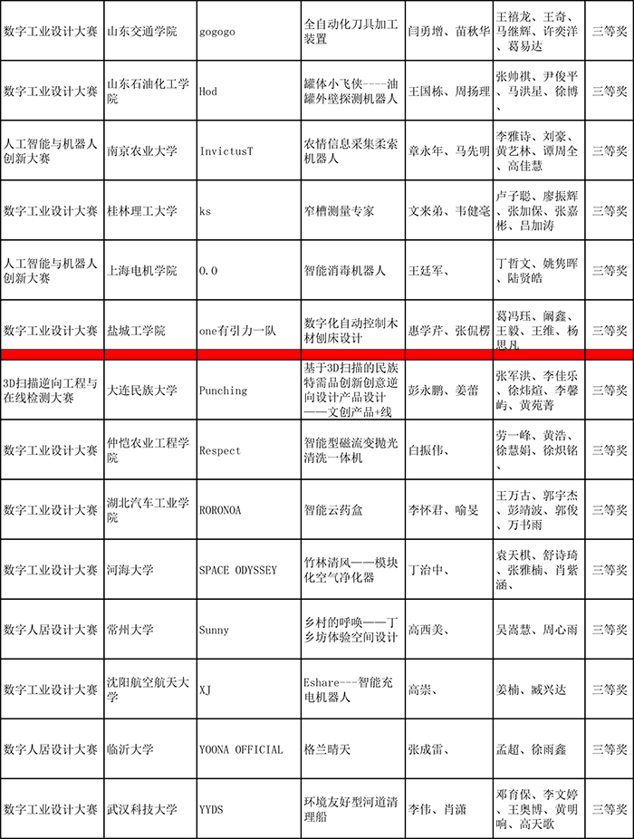 近日,全国3D大赛13周年精英联赛(2020-2021)总决赛榜单公布,我校机械优集学院马如宏教授、侯鹏亮老师指导的由洪海升、张劲翼、王硕、沈国涛和何宇杰完成的新型民用液压电控可折叠外骨骼/附肢获得全国一等奖;惠学芹老师、张侃楞老师指导的由葛冯珏、阚鑫、王毅、王维和杨思凡完成的数字化自动控制木材刨床设计获得全国三等奖。