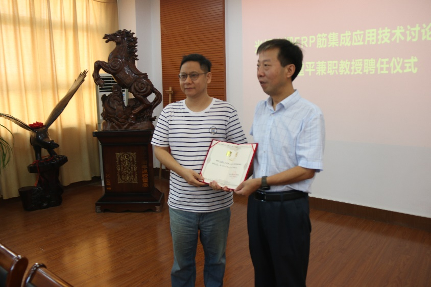 9月24日上午,在南校区土木工程馆A206会议室,土木学院举办光纤光栅FRP筋集成应用技术研讨会暨兼职教授聘任仪式,江苏飞博尔新材料有限公司董事长沈锋,土木工程学院院长吴发红、党委书记谷伟、副院长王照宇和相关专业教师等参加。聘任仪式由荀勇教授主持。