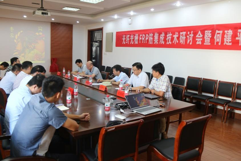 聘任仪式后,学院召开了光纤光栅FRP筋集成应用技术研讨会。何建平作了关于全光纤传感技术及结构安全监测与诊断的学术报告。报告围绕重要基础设施安全问题,介绍了当前结构安全监测“星-空-地-体”一体化监测的趋势;针对传感器使用寿命匹配结构服役寿命以及感知性能稳定性等问题,介绍了基于光纤光栅传感技术、分布式光纤布里渊传感技术和分布式光纤振动传感技术的多系统监测与集成方法,纤维增强树脂封装的光纤传感器以及在高铁轨道、岩溶塌陷、边坡、基坑方面的模型试验及工程示范等。