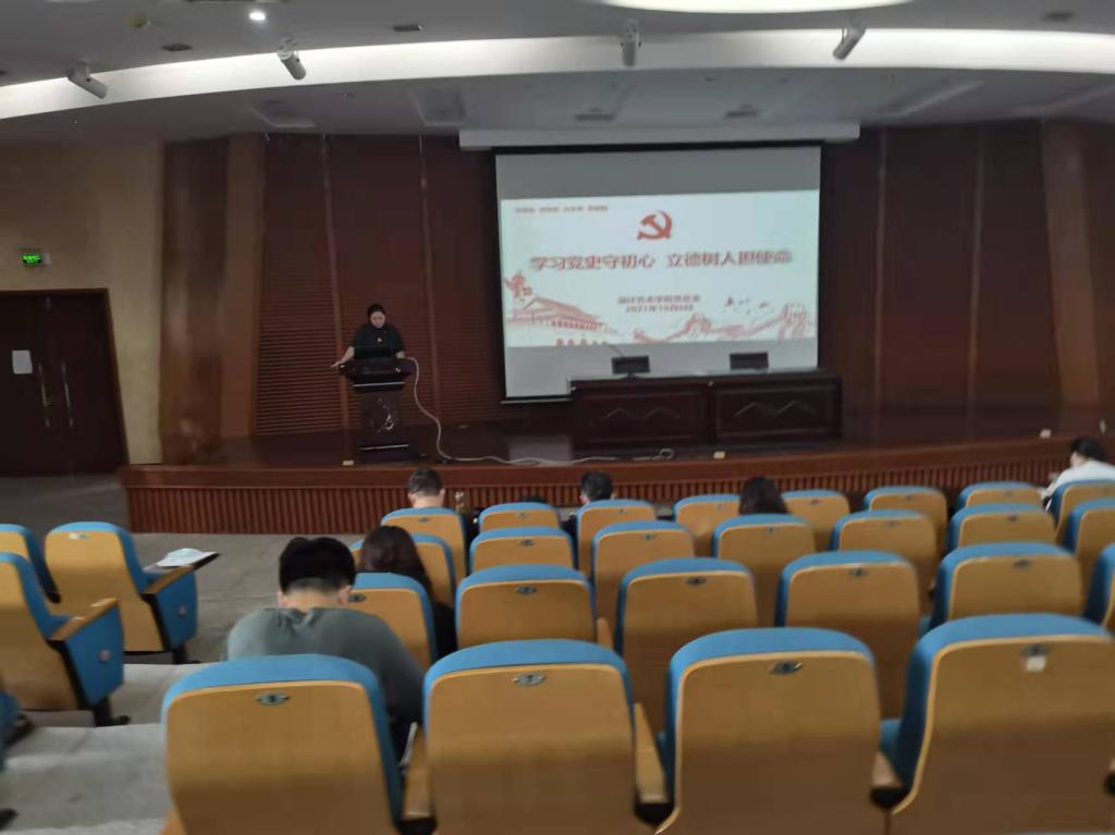 10月6日下午,设计艺术学院在润美楼报告厅举办“学习党史守初心,立德树人担使命”党史学习心得交流会。党总支书记胡凌霞主持,党总支副书记杨士卿和学工办主任杨滢作重点发言,部分教职工代表作学习心得交流,设计艺术学院全体教职工参加。