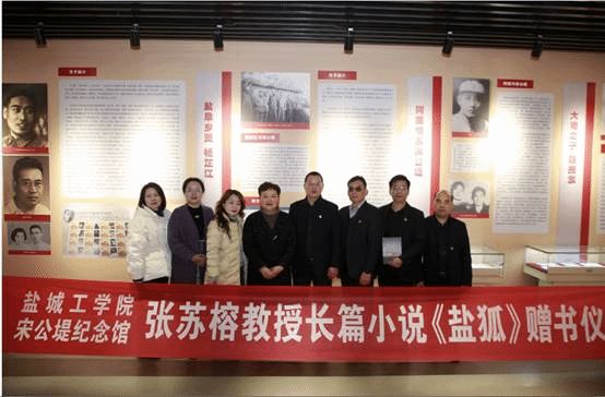 小说《盐狐》主要反映了1940年代国家危难之际盐阜儿女舍生取义的革命历史,展现了刘凤春所代表的盐阜地区方强烈士、胡特庸烈士、程步凤烈士、郭猛烈士等形象。该作品获盐城市政府文艺奖一等奖。本次在宋公堤纪念馆举行的《盐狐》赠书仪式,既是学院和新滩盐场结对开展党建融合活动,强化党建的沟通与交流,在经验共享中互补优势的具体成果,又是推进党史学习教育、重温盐阜地区可歌可泣的历史、传承红色基因的实践党课,以及深化课程思政、丰富课程内容、落实立德树人根本任务的有效形式。