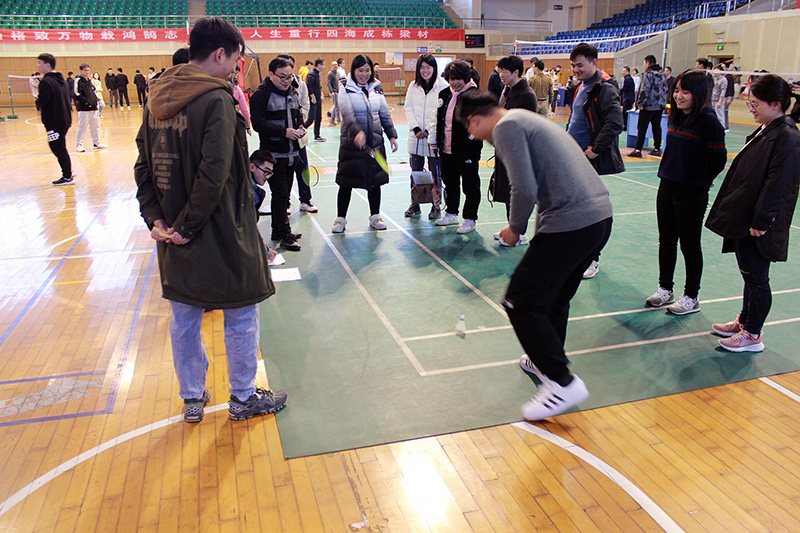 本次运动会共设置了六个项目:气排球、两人三足、羽毛球发球进圈、定点投篮、踢毽子和跳绳。其中两个团队项目格外引起大家的兴趣:气排球比赛场面热烈,运动员精神饱满,博得阵阵喝彩,“生之队”经过激烈角逐最终战胜了“海之队”;两人三足比赛,气氛紧张,最终“小女生队”爆冷获得第一。另外,定点投篮比赛竞争异常激烈,任胜杰老师十投十中勇夺第一;羽毛球发球进圈也实力非凡,几经加赛才定胜负。