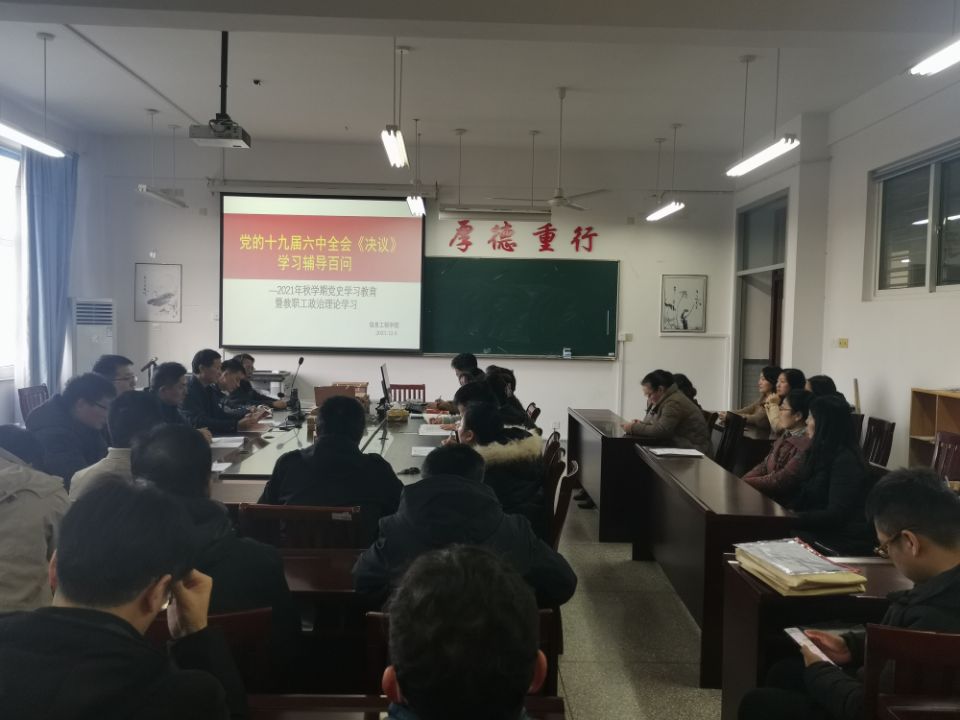 12月8日下午,信息学院在南校区怀德楼B410会议室组织开展2021年秋学期第八次教职工政治理论学习,学院党委书记王爱军主持,80余名全体教职工参加。