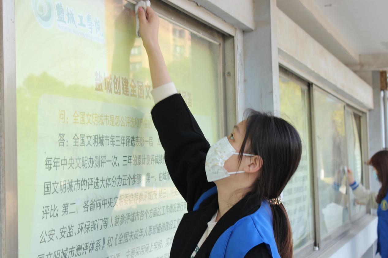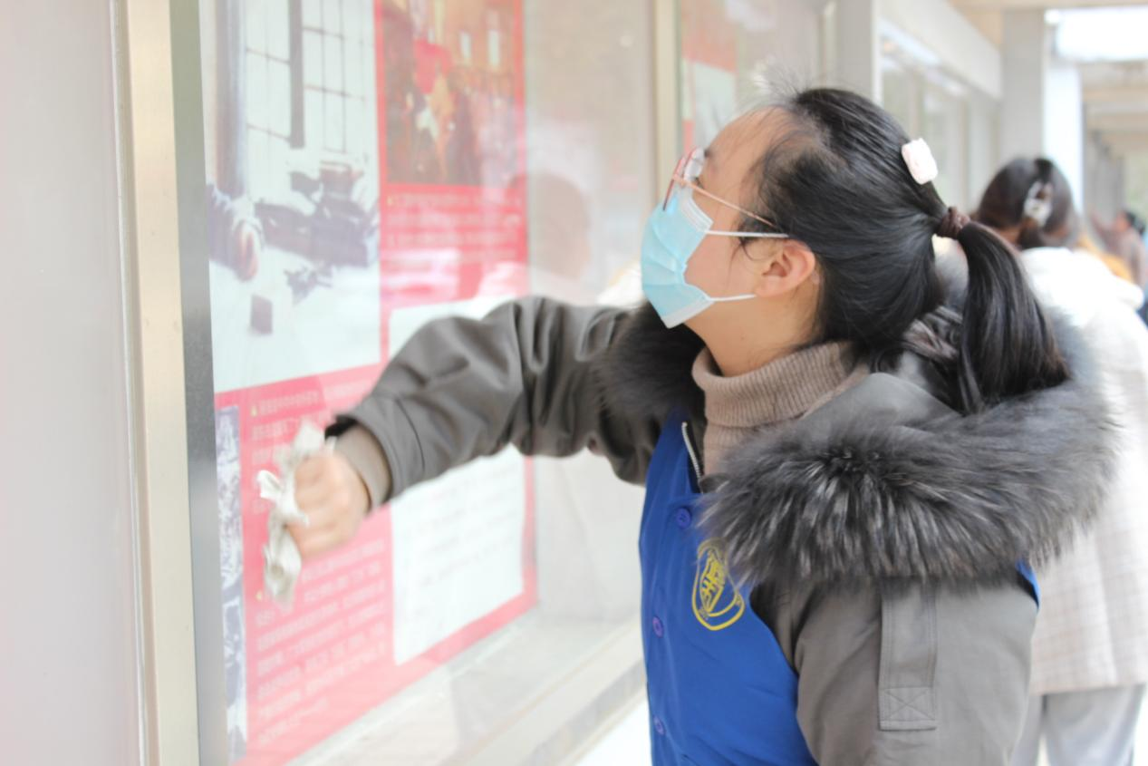 B生物191班的周秀秀同学甩甩胳膊说:“一个寒假没活动了,我出了好多汗,不过看着自己打扫干净的宣传栏,很有成就感!”大一的张妍同学说今天才感觉到校园卫生保洁工作不容易,保持学校的干净卫生需要大家一起努力。大四的尹根同学在大学期间参加过多次学院的志愿服务活动,锻炼了自己的意志与责任担当,她也在去年年底成功通过了江苏省委选调生的考试,毕业后将在工作岗位上继续践行责任担当。她说:“作为青年一代,我们要将习总书记对青年的号召落到实际行动中,担负时代使命,在担当中历练,在尽责中成长,这是我理解的新时代的雷锋精神。”