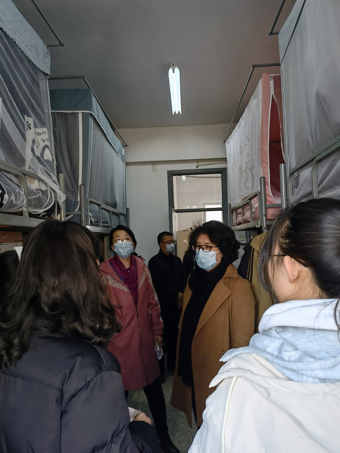 演练后,谷文华、齐金花带领大家走访学生宿舍,了解学生疫情防控、线上学习难点、考研考编计划执行、日常生活卫生等实际情况,并现场回答了同学们关于提高学习效率、考研目标确定等方面的问题。