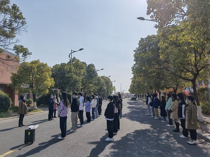 “你好,你院有位学生昨天的核酸检测报告异常......”,在倪璞接到校疫情防控领导小组电话通知(模拟)后,学院演练正式拉开序幕。演练就排查疑似确诊对象及其密接人员物理位置、通知就地隔离、上报相关信息、统计学院其他学生物理位置、志愿者领取防护服并做好防护进入工作岗位等流程一一开展。
