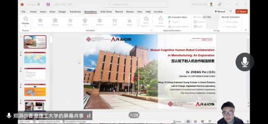 4月11日下午3点,香港理工大学郑湃教授受邀为我校研究生做学术报告。报告由机械优集学院智能制造系主任卢倩博士主持,机械优集学院相关专业教师和研究生参加。本次学术报告采用线上腾讯会议的方式进行,线上参会交流人数最高达到218人。