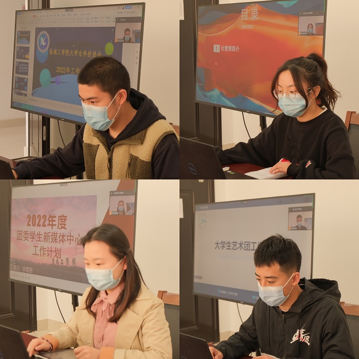 汇报会上,14位团属主要学生干部分别从工作理念、工作规划、工作举措等方面汇报了2022年度的工作计划。各组织负责人从深化学习、强化责任、优化组织、细化服务等方面提出了本组织的工作思路,力求在2022年度的各项学生工作中进一步提升政治站位高度、加大组织改革力度、扩大引领服务广度。学生会主席团成员韦琰霖以“以行引领,全心服务——做有信仰、有担当的学生干部”为题做了学生会工作心得分享。他号召所有的学生干部要发扬好“党有号召,团有响应”的优良作风,担负好“争当表率、争做示范、走在前列”的青春责任,全心全意为同学服务,建设好“盐粒子”身边的共青团。