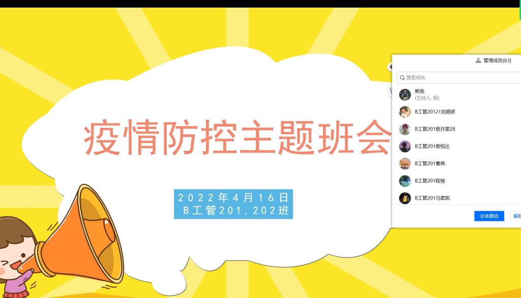 本次疫情防控线上主题班会进一步加强了土木学子对疫情防控的认识,也展现了土木学子为抗击疫情贡献力量的信心和担当。