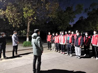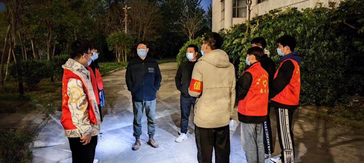 学院组织以党委书记高健、院长戴勇带领三名专职辅导员、一名兼职辅导员和一名志愿者老师形成驻校7人疫情防控工作小组驻守校园疫情防控第一线。高健、戴勇带领化工学院师生党员加强夜间巡查,严查私拿校外快递、快餐学生,严抓翻墙进出学校的学生,筑牢校园防线,守护校园安全,以化院人“学以精工,修身成化”的“硬核”精神奋战“疫”线,体现了新时代党员的情怀与担当。
