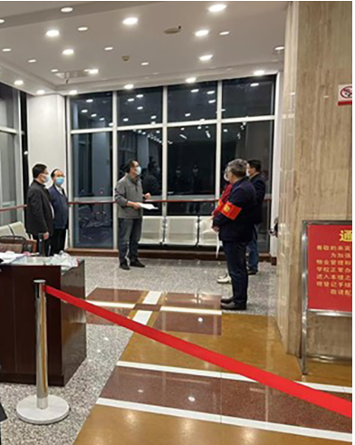 学院领导班子成员带头驻守一线,党政办公室主任、教科研办公室主任勇于担当,当好疫情防控的“排头兵”。因疫情防控形势严峻,学校实行封闭管理。学院组织以党总支书记钱长锋、院长助理马荣带领李宝、蔡云晨形成驻校4人疫情防控工作小组驻守校园疫情防控第一线。