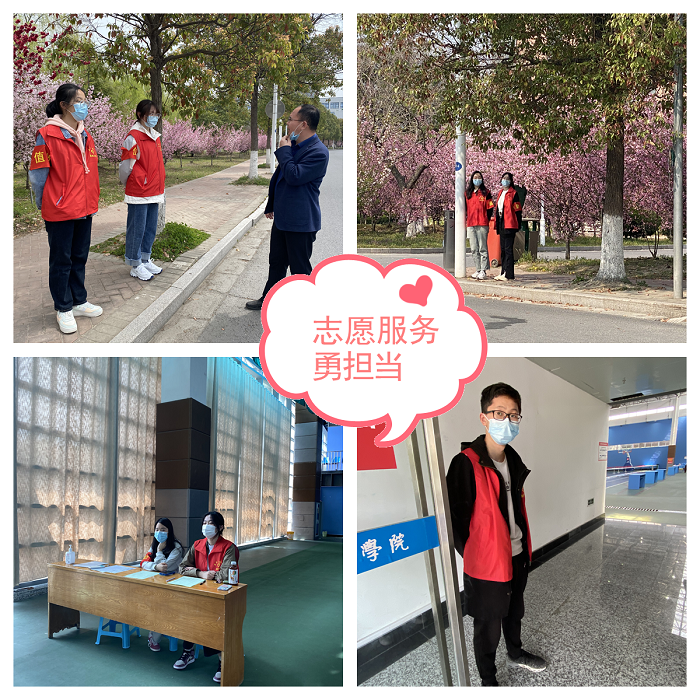 积极参加志愿服务活动,用汗水书写青春。面对严峻的疫情防控形势,数理学子积极报名参加学校组织的核酸检测引导、食堂值班、校园路口指引、夜间巡逻等志愿服务,以奋斗姿态在防疫一线筑起青春堡垒,用实际行动诠释新时代青年的责任与担当。