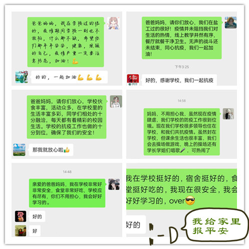 家长们纷纷通过亲笔信、短视频等方式为同学们送来了最真挚的祝福,鼓励孩子坚定信念,严格遵守学校疫情防控规范要求。字里行间的情真意切,让同学们在这特殊的时节里有了更多的思考和成长,也汲取了更多的力量和勇气。
